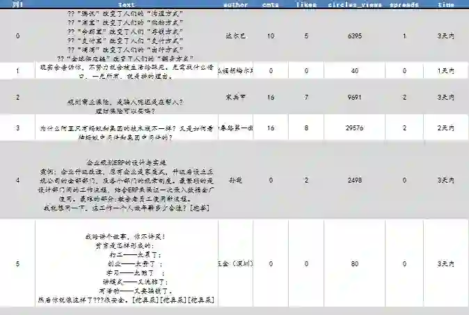 cols = ['author','text','cmts','likes','circles_views','spreads','time']