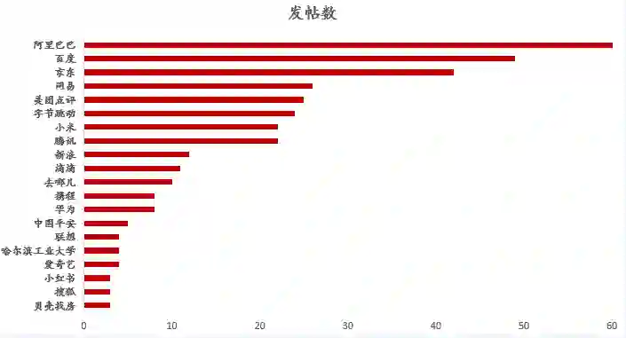 可以看到,发帖人大多来自互联网企业,金融、地产等其他企业相对较少。