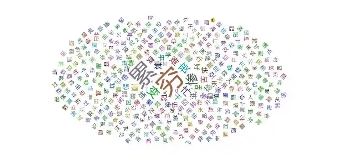 爬下来之后,删掉超过一个字的评论,按词频确定大小,做词云图如下: