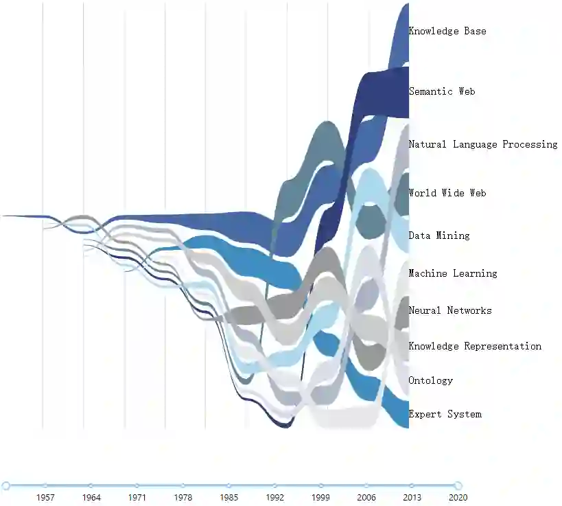Knowledge Base(知识库)、Semantic Web(语义Web)、Natural Language Processing(自然语言处理)近年来的研究热度居高不下。