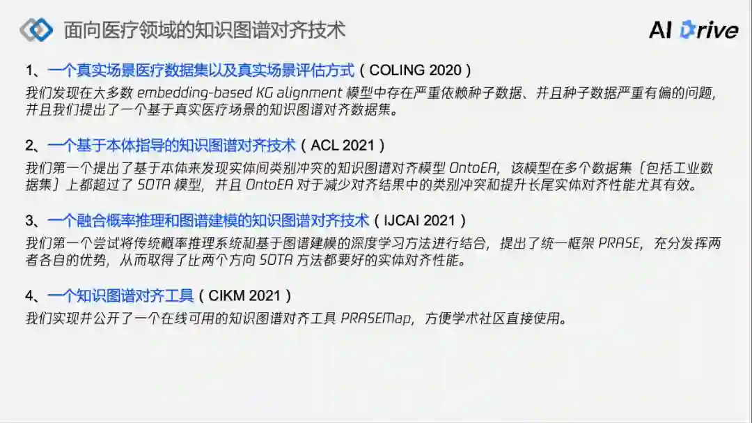 在过去一年里,我们围绕构建大型医疗知识图谱共做了四方面工作。
