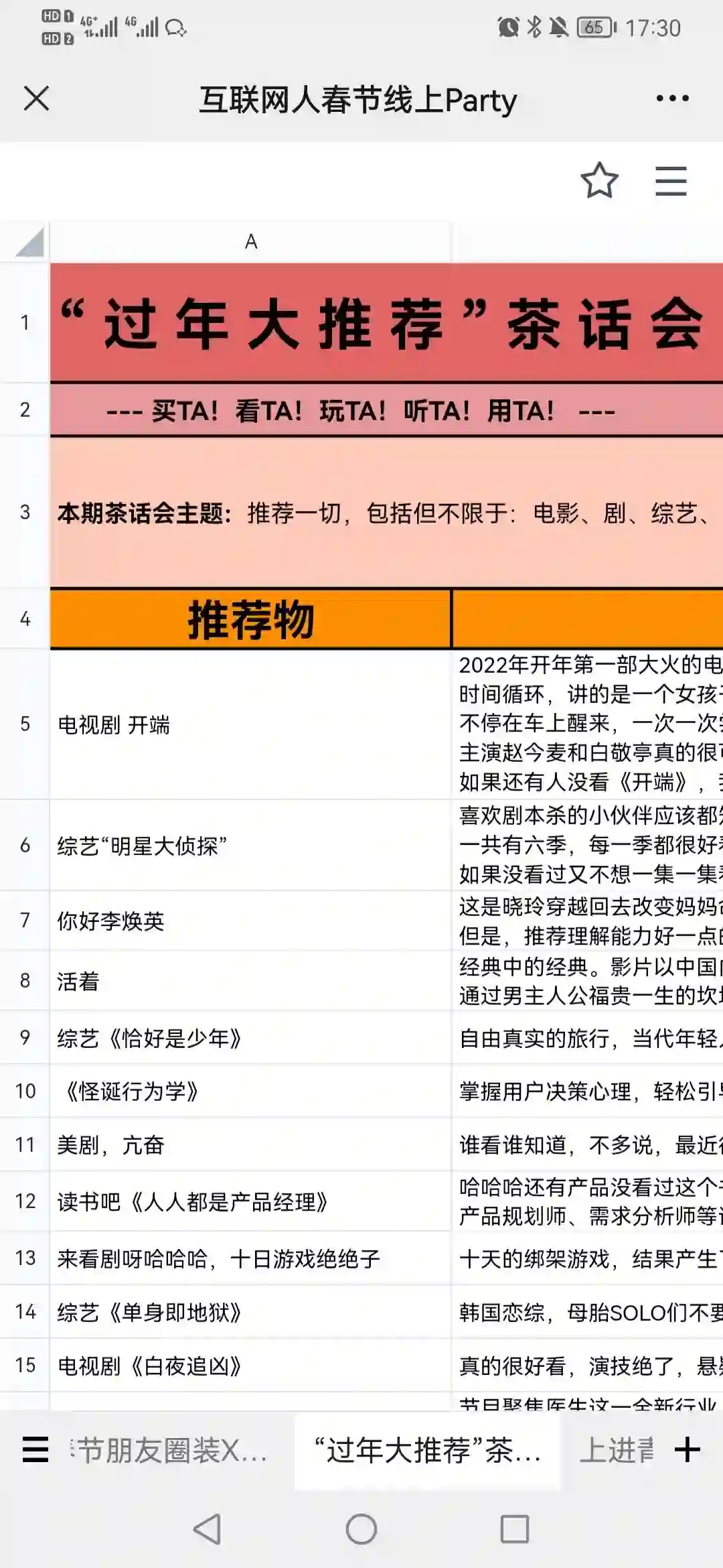 除了游戏,还有哪些综艺、音乐、书、电影等适合在假期N刷?来“过年大推荐茶话会”,给大家疯狂安利吧。