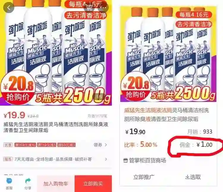 淘宝特价版和淘宝联盟上的同店同款洁厕液