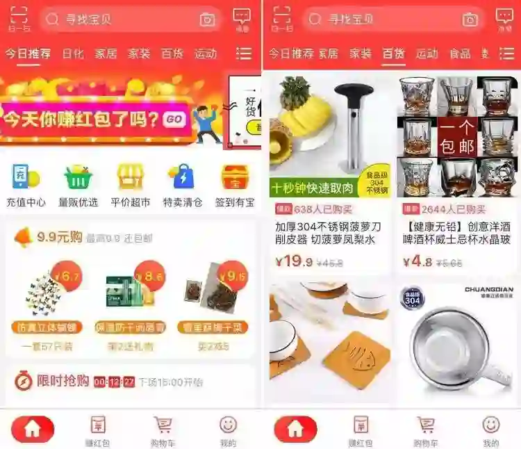 低调推出的淘宝特价版主打是邀请注册赚红包以及九块九包邮。从页面和使用方法上看,特价版的淘宝也都和普通淘宝 App 差不多。
