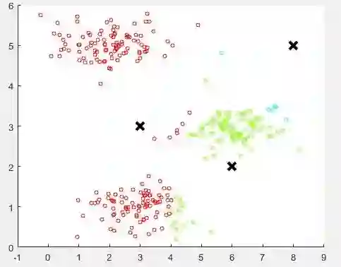centroids[i,:] = np.mean(X[np.ravel(idx==i),:], axis=0).reshape(1,-1) # 索引要是一维的,axis=0为每一列,idx==i一次找出属于哪一类的,然后计算均值