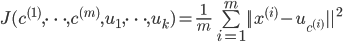 其中表示第i条数据距离哪个类中心最近,其中