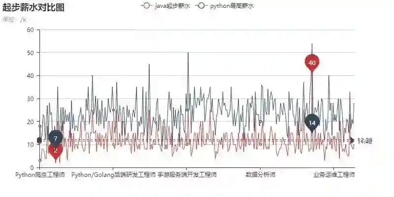 Python起步薪水大多数都比Java的高。Java平均起步薪水11.42K,Python平均起步薪水12.08K。