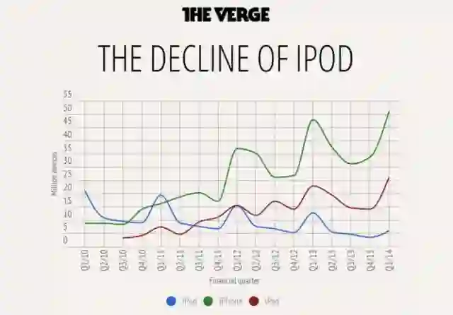 在营收和设备生态上,iPhone 也取代了 iPod 这一曾经的核心产品。从产品功能和对公司的财务价值上,iPod 都过时了——这是它们的产品线被苹果杀死的最主要原因。