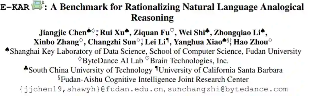来自复旦大学、字节跳动人工智能实验室等机构的研究者提出 E-KAR 数据集,这是首个可解释的知识密集型类比推理数据集,相关工作已经被 ACL 2022 Findings 接收。