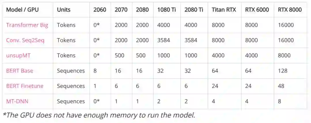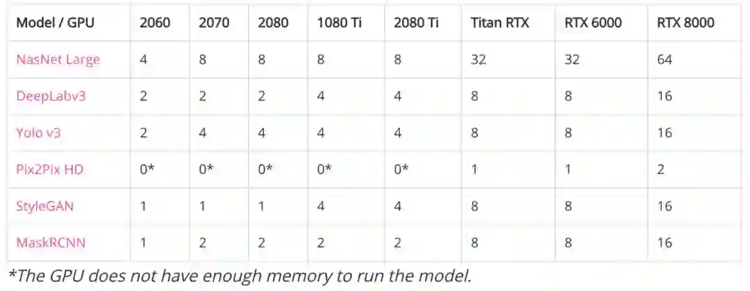 以下 GPU 可以训练大多数 SOTA 模型,但不是所有模型都能: