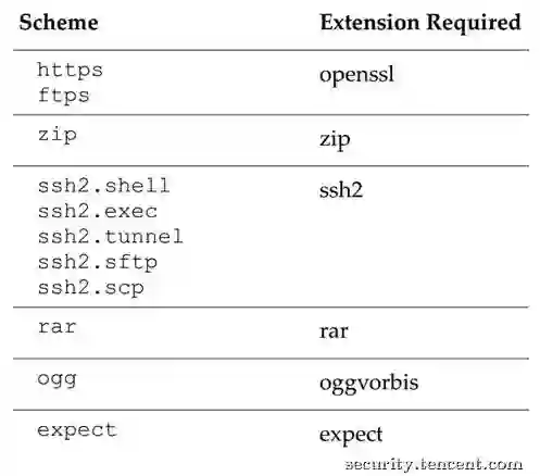 上图是默认支持协议,还可以支持其他,如PHP支持的扩展协议有