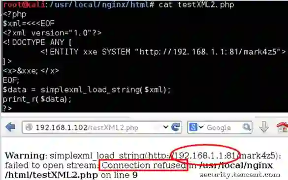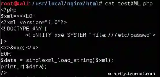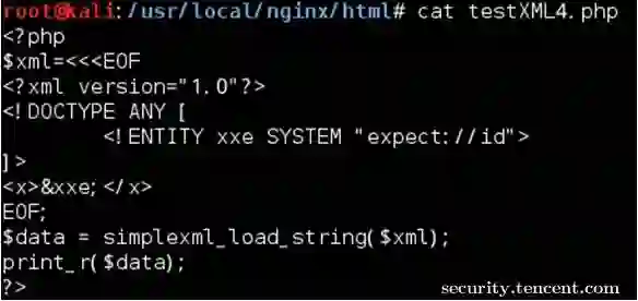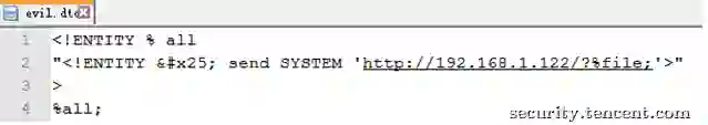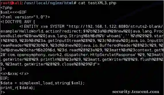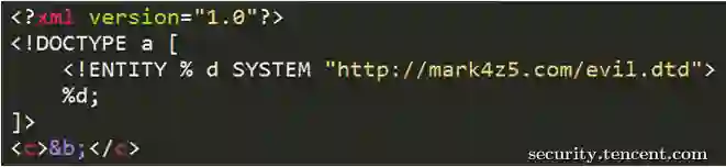 当允许引用外部实体时,通过构造恶意内容,可导致读取任意文件、执行系统命令、探测内网端口、攻击内网网站等危害。