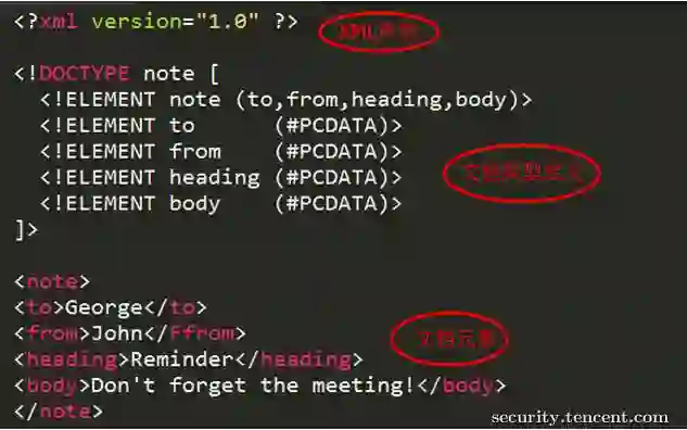 关键词:<!DOCTYPE和<!ENTITY,或者,SYSTEM和PUBLIC。