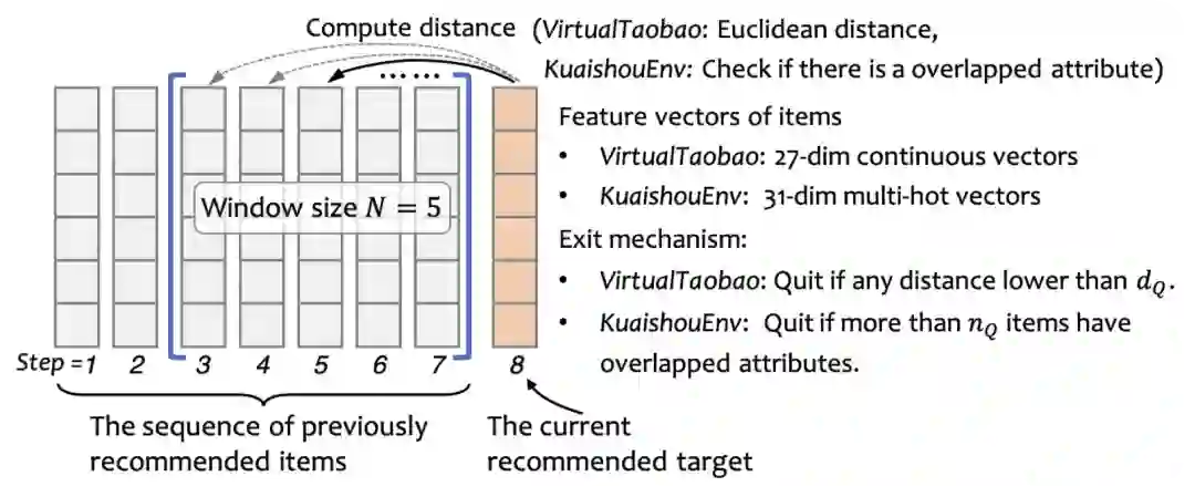 下图给出了一个退出的机制的示意图,除了上文提到的快手数据以外,我们还用了VirtualTaobao这个强化学习的交互环境。