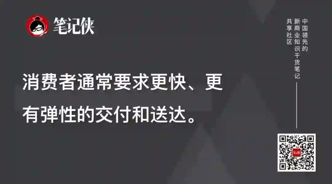 我们再讲一下供应链的改变。消费者通常要求更快、更有弹性的交付和送达。