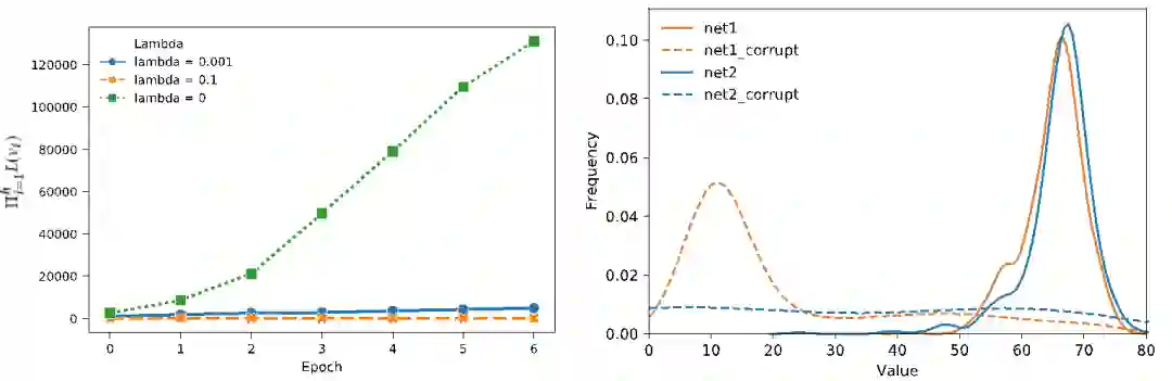 在训练中我们提出一种新的结合了Lipschitz正则化的策略估计方法,通过直接控制Lipschitz常量来学习得到一个更光滑的价值函数。价值函数光滑程度的重要性主要体现在增强状态输入之间关联性以及提高非线性价值迭代的收敛性两方面。如下图所示,黄色跟蓝色分别代表使用了和没有使用Lipschitz正则化的神经网络。一开始两个网络的输入分布几乎重合,在对网络参数加入了相等大小的噪声后,蓝色分布发生了剧烈变化,而黄色分布则体现了对噪声的鲁棒性。