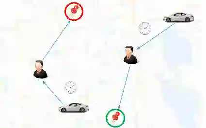 当下滴滴网约车采用的全局最优的派单模式,是通过搜索1.5-2秒内所有可能的司机乘客匹配,由算法综合考虑接驾距离、道路拥堵情况等因素,自动将订单匹配给最合适的司机接单,让全局乘客接驾时间最短。本文所述的算法也是在这一派单模式基础下的改进。