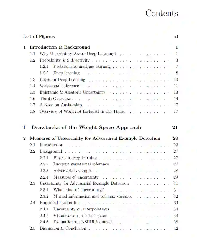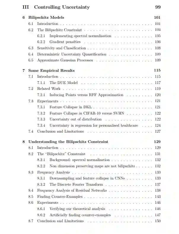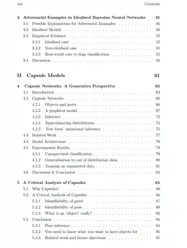 设计具有不确定性的深度学习模型,使其能够在预测的同时提供合理的不确定性,一直是部分机器学习社区的目标。从业者也经常需要这样的模型。最普遍和最明显的方法是采用现有的深层架构,并尝试将现有的贝叶斯技术应用于它们,例如,将神经网络的权重作为贝叶斯框架中的随机变量处理。本文试图回答这个问题: 现有的神经网络架构是获得合理不确定性的最佳方式吗?在本文的第一部分,我们提出了在对抗环境下贝叶斯神经网络的不确定性行为的研究,这表明,虽然贝叶斯方法在数据分布附近的确定性网络上有显著的改进,但外推行为是不受欢迎的,因为标准神经网络架构在结构上偏向于自信外推。基于此,我们探索了两种标准深度学习架构的替代方案,试图解决这一问题。首先,我们描述了一种新的胶囊网络生成公式,它试图通过对场景结构的强假设来将结构强加到学习任务中。然后,我们使用这个生成模型来检查这些潜在的假设是否有用,并论证它们实际上存在重大缺陷。其次,我们探索了bilipschitz模型,这是一种解决深度神经网络中确保先验回归这一更有限目标的体系结构。这些方法基于深度核学习,试图通过使用最终分类层来控制神经网络的行为,当与支持向量集的距离增加时,分类层会恢复到先验值。为了在使用神经特征提取器的同时保持这一特性,我们为这些模型描述了一种新的“bilipschitz”正则化方案,该方案基于通过施加由可逆网络上的工作激发的约束来防止特征崩溃。我们描述了这些模型的各种有用的应用,并分析了为什么这种正则化方案似乎仍然有效,即使它背后的原始动机不再成立,特别是在特征维度低于输入的情况下。我们的结论是,虽然胶囊网络可能不是一个有前途的方向,但本文最后部分讨论的模型是未来研究的一个富有成果的领域,在许多应用中作为标准贝叶斯深度学习方法的一个有前途的潜在替代方案。