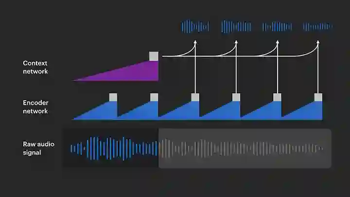 对于这种方法,我们使用了两个叠加在一起的网络:一个编码器网络,它将原始音频映射到时间频率较低的特征表示;一个上下文网络,它预测正确的音频。为了使训练任务更有效,我们要求上下文网络对未来进行更加深入的预测,从而使预测问题变得越来越困难。