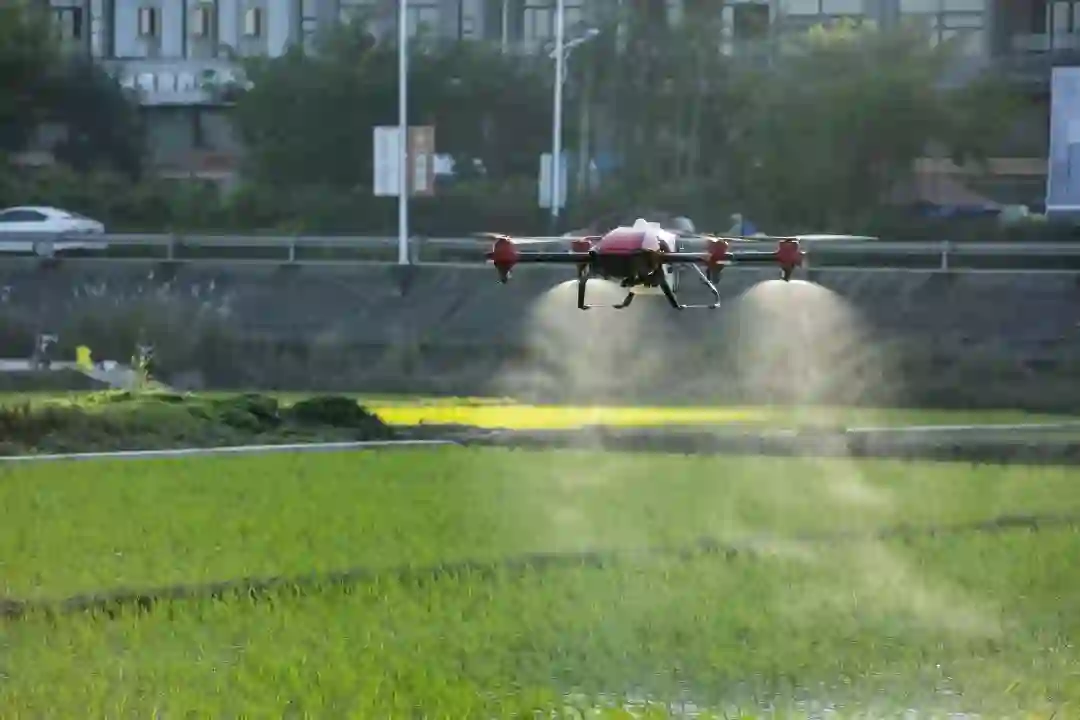而且,因为这次喷药无人机的高度会比稻田里面飞得高,也怕撞上树枝子之后,无人机掉下来砸伤人。