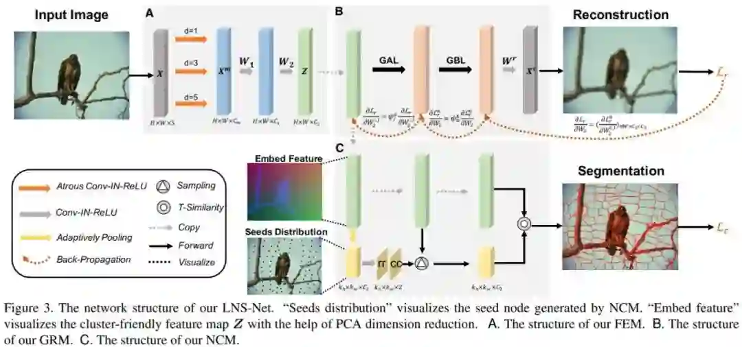 为解决在线学习所带来的灾难性遗忘问题,北大等研究机构提出了采用梯度调节模块(GRM),通过训练权重在特征重建时的作用效果及像素的空间位置先验,调节反向传播时各权重的梯度,以增强模型的记忆性的超像素分割模型 LNSNet。