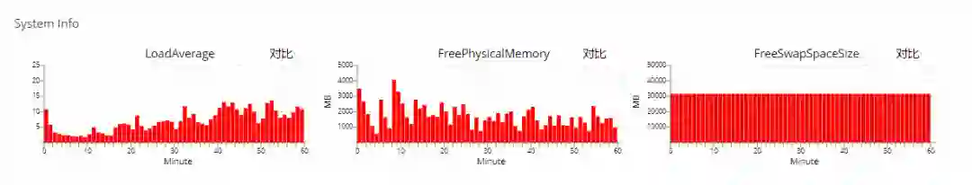 生产上的 CAT 用的都是物理机, 配置是志强物理核心 E5 双路 CPU(CPU 8*2,超线程 32 核), 128G 内存, OS redhat 6.5。高峰时的 CAT 的 context switch 相当高,达到 120 万 / 秒, 系统负载偶尔到 20 以上,一次较大的 Full GC 往往耗时 3-5 秒;一次长时间的 GC 就可能造成 CAT 的端口无响应,只有重启才能解决。