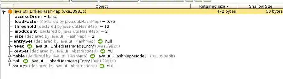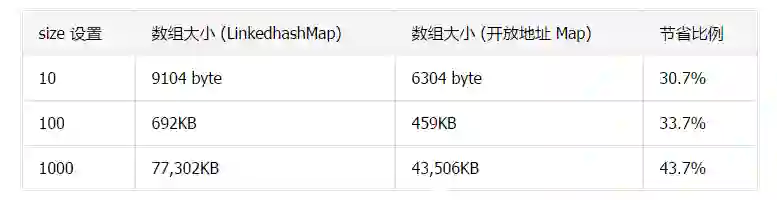 LinkedHashMap 中的内存使用效率较低
