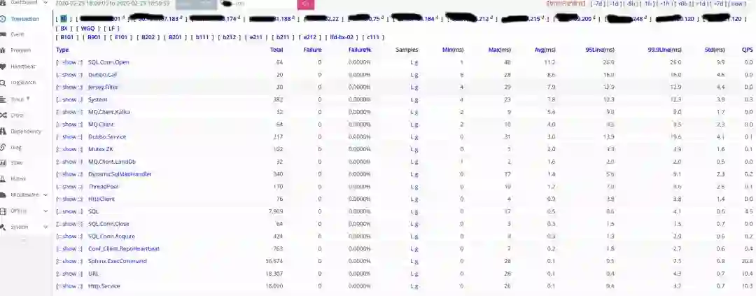 下图是应用的 Transaction 报表,集成了多个中间件打点:
