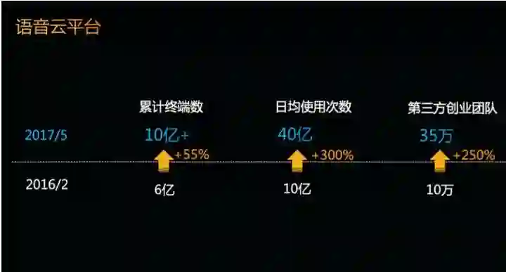 语音技术如今已被应用到各行各业,讯飞开放平台致力于为开发者提供一站式人工智能交互解决方案。数据显示,超过 35 万的开发者在使用讯飞的语音接口,每天的服务次数超过 40 亿次,而一年前这个数字只有 10 亿次,增长速度可见一斑,也从侧面显示出受众对于人工智能技术的需求猛增。