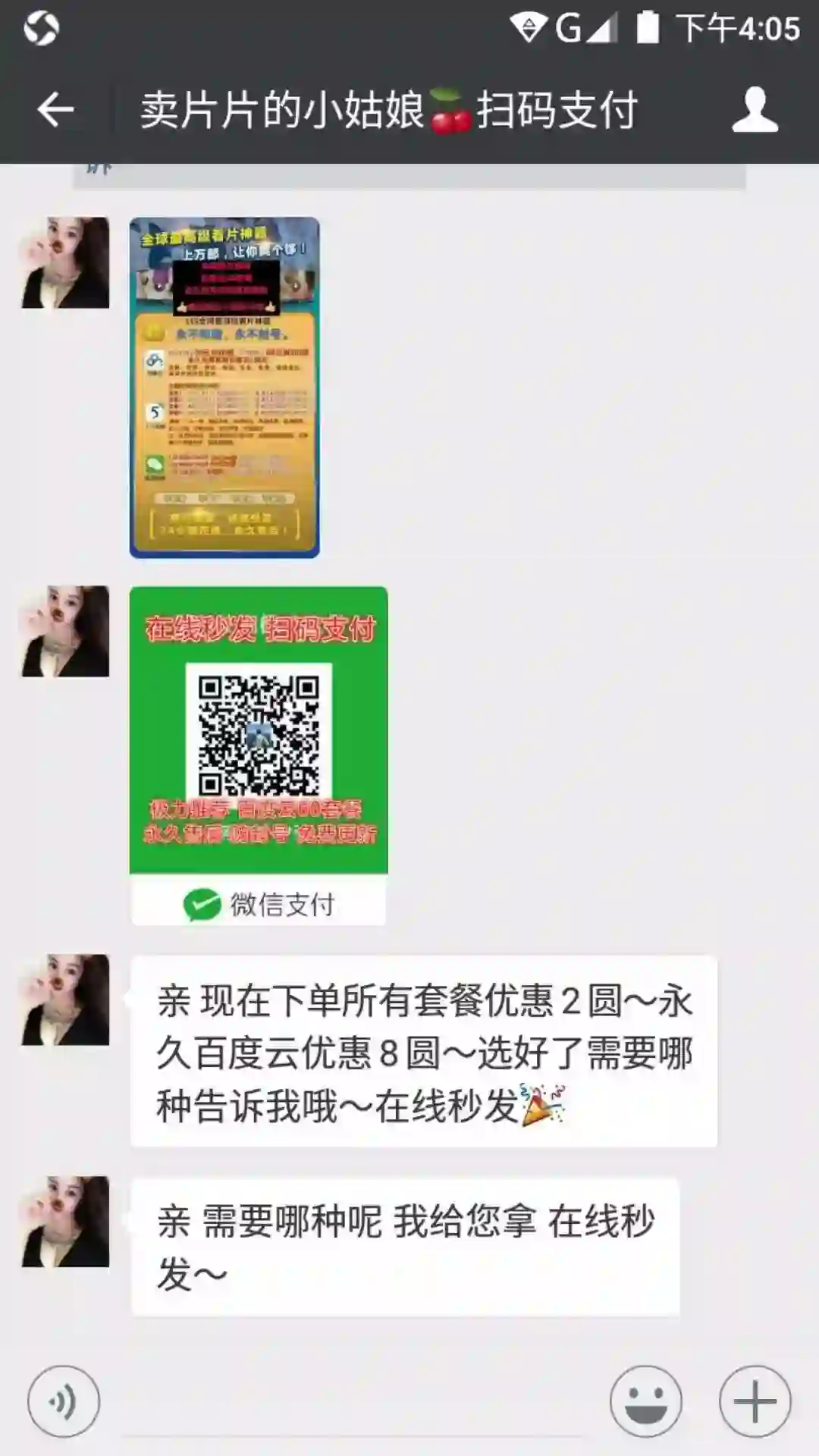 她们会向你承诺,一旦付款,视频内容在线秒发,这些视频的价格大致在20-300元左右,通过一些云盘账号或者在线网址来发送。