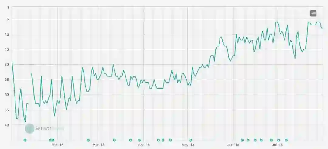 △ Monkey App 在 2018 年美国 iOS 榜单的排名上升趋势