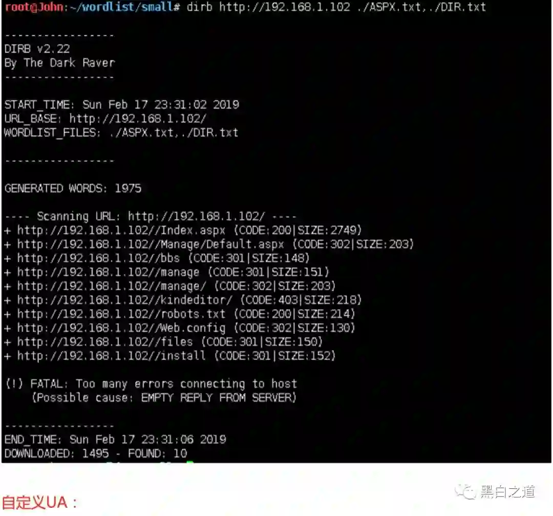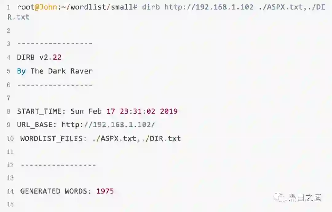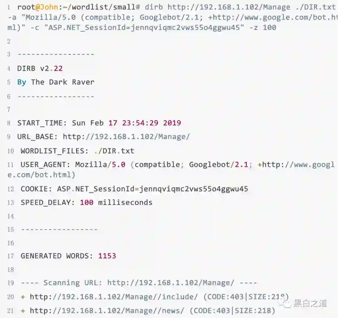 DIRB是一个基于命令行的工具,依据字典来爆破目标Web路径以及敏感文件,它支持自定义UA,cookie,忽略指定响应吗,支持代理扫描,自定义毫秒延迟,证书加载扫描等。是一款非常优秀的全方位的目录扫描工具。同样Kaili内置了dirb。