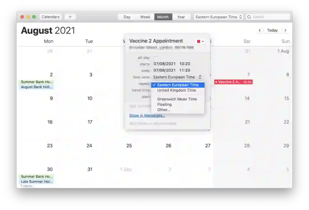改了时区之后,手机日历上的日程也会自动把原先的设置从伦敦时间改成东欧时间,对行程没有影响,日后手动添加的时候也有选择时区的余地。