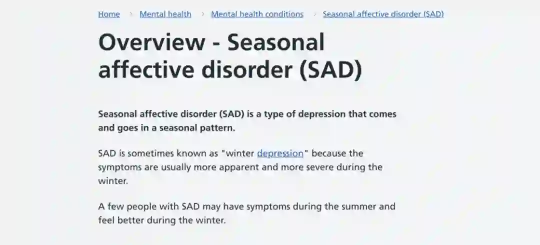 这也带来了所有住在高纬度地区人类的共同烦恼:天黑太早,特别致郁。NHS 还专门有一个网页,提供季节性抑郁(