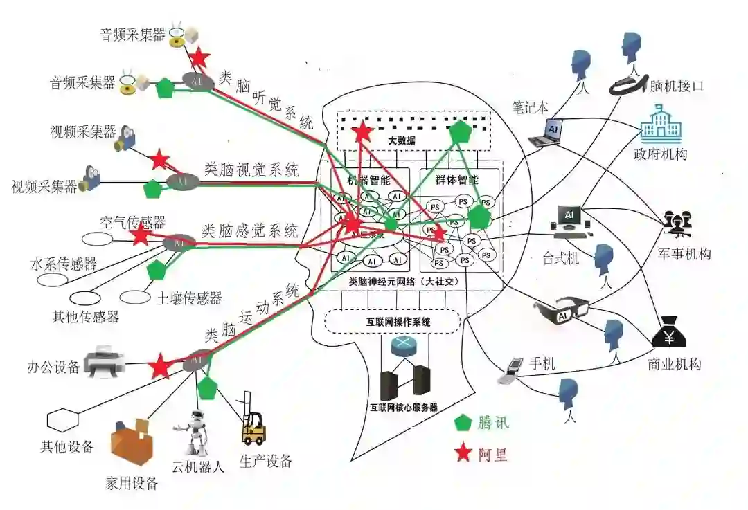 阿里依托其在企业用户的优势,已经形成在互联网的左大脑的领先地位,而腾讯依托QQ和微信庞大的个人用户,在互联网的右大脑-云群体智能建立了竞争壁垒,