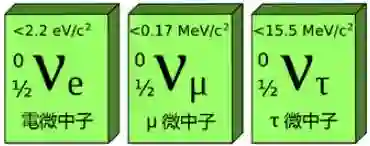 图4- 标准粒子模型中的三种中微子,可以看出后两种质量一般远大于电子中微子