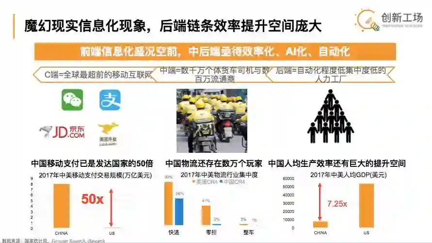 对我们来说,这样所谓的不匹配从第一个角度来讲,其实都是潜力。如果我们像欧美那样已经非常发达,那么它的改进空间就非常有限。而中国的前端已经发展很多了,终端和后端依然有大量的效率提升空间,对整个工作来说是增长潜力,对我们来说就是投入机会。