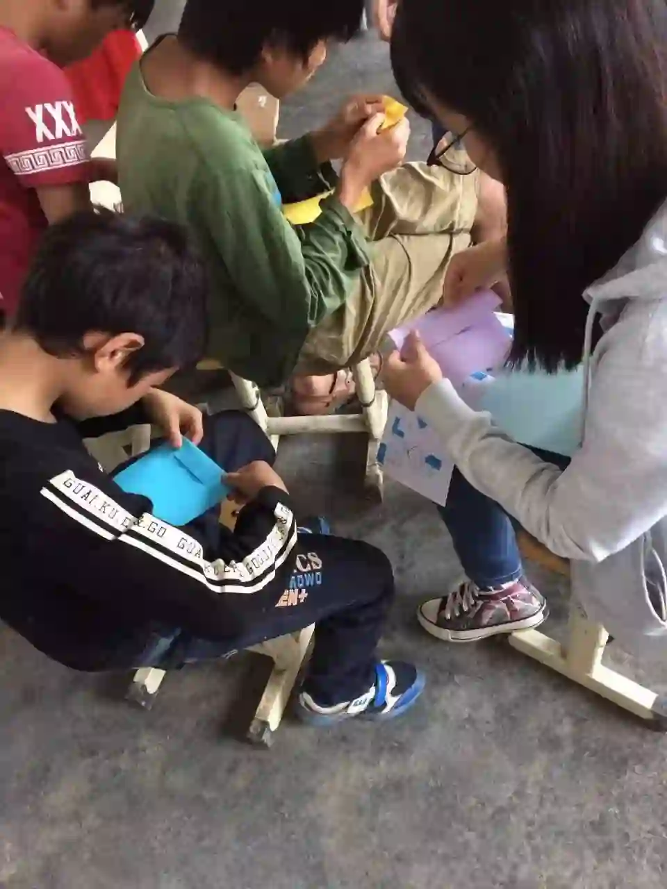 这些孩子们并不是“想当然”的,只会接受不会思考和建议的授课对象,和@囫囵 一样,支教点的老师们基本都选择了授课与反馈同步进行的方式:“第一节课是按着我的节奏来,下课跟他们聊天收集他们的反馈,或者给他们写小纸条。我尽量平时没事就跟他们玩儿聊天,消除陌生感和距离感。” 她每天记住几个孩子,了解他们的特点喜好,几乎第一个星期都在跟孩子们熟悉。