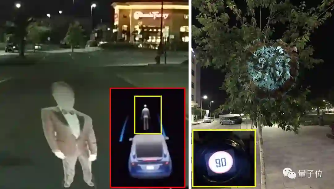 今年早些时候,他们便用投影技术,在夜间的道路和路边的树上,投影出人和路标等图像,成功「忽悠」了搭载HW2.5的特斯拉Model X和搭载Mobileye 630设备的车辆。