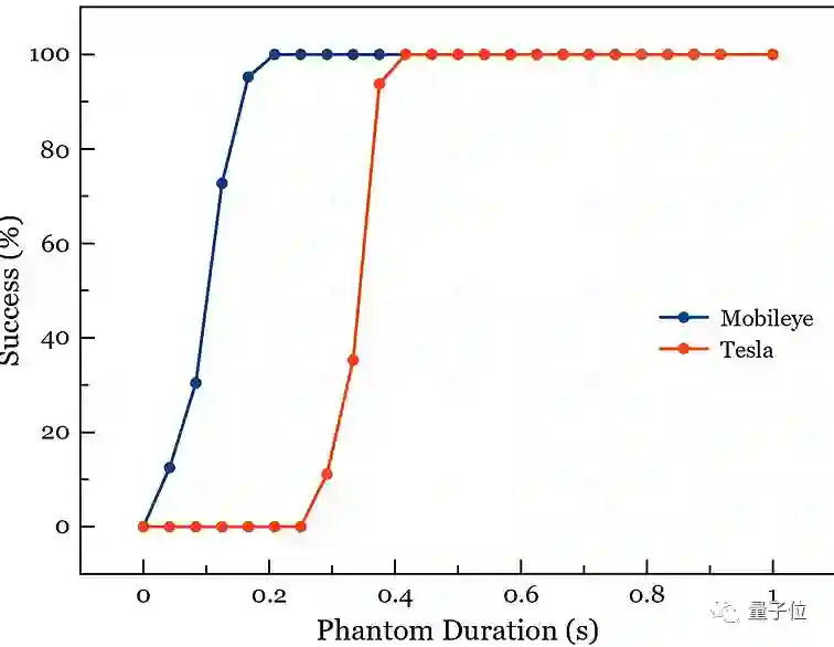 这些干扰信息的持续时间不用很长,只需要几百毫秒的时间,就足以让号称最先进的特斯拉Autopilot作出错误反应。