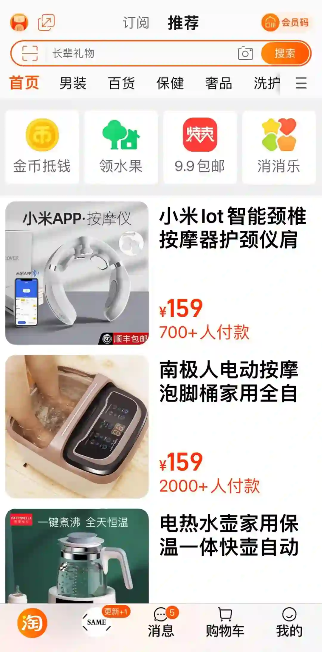 今日,淘宝推送最新版本 10.4.10 ,在双 11 前最新版本中正式上线“长辈模式”,方便长辈清晰无阻碍线上网购。此次长辈模式主要将页面更简单化、字体放大以及上线了智能语音助手,目的就是为了帮助银发族逛淘宝时看得更清楚,操作更简单,购物更便利。此外,开启长辈模式后,淘宝会推荐符合老年群体使用的商品,还在首页保留了“金币抵钱”、“领水果”、“天天特卖”、“消消乐”等 4 个最受银发人群喜爱的互动功能。