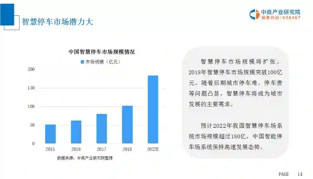 为了让更多的读者了解智慧停车行业发展情况,中商产业研究院特发布《2019年中国智慧停车市场前景研究报告》。报告介绍了智慧停车概况、智慧停车行业背景、智慧停车行业现状、智慧停车重点企业,并对预测了智慧停车发展趋势。报告最后附录智慧停车企业名录。以下是报告详情: