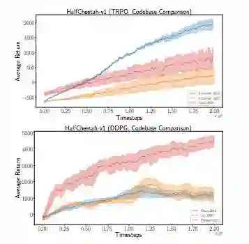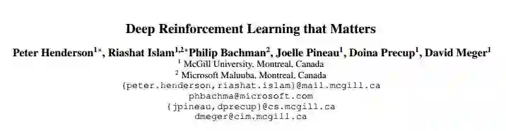 近年来,深度强化学习(RL)被用于解决很多领域中的难题,并取得了令人瞩目的成绩。为了保持快速发展的局面,复现(Reproducing)已有的研究并准确评估新方法所带来的进步是很重要的。可惜,顶尖的深度强化学习方法很少能被简单的复现。尤其是,标准基准环境中的不确定性和不同方法之间的内在差异导致研究中的结果难以理解。如果实验过程缺乏显著性的度量和严格的标准化,则我们很难确定先前顶尖技术取得的进展是否有意义。在这篇论文中,我们研究了复现实验所面临的挑战、合适的实验技巧和报告流程。通过与常见基准进行对比,我们阐释了报告中度量方法和结果的可变性,同时提出了使深度强化学习未来的研究成果更易复现的指南。我们希望减小研究人员在不可复现和易误解的结果上花费精力,并引起大家对如何使该领域持续发展进行讨论。