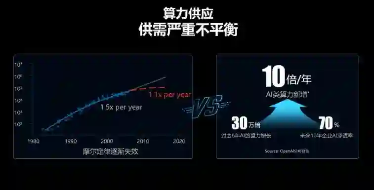过去主要依赖摩尔定律,其本质是提高性能,降低单位比特算力的成本,但如今 AI 算力成本的问题已经日益突出,公司一方面通过芯片来解决问题,另一方面通过加速硬件以及智能管理。也就是说,在智能计算产业上,华为将在技术上继续引领,而在生态上扩大合作。华为希望提供比摩尔定律更快的效能增长速度,目标要超越客户的期望,不仅只是算力,还要再管理、IO、能效都能够达到更高的竞争优势。