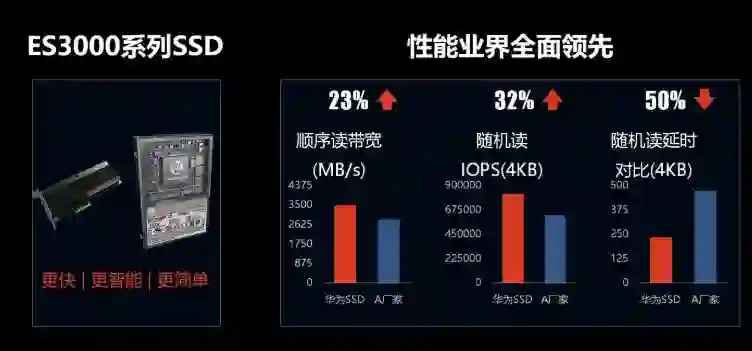 而作为服务器的最基础架构之一,也就是存储技术方面,华为也推出 ES3000 系列 SSD,通过优化的主控和算法,达到远超过业界同级的存储存取效能。