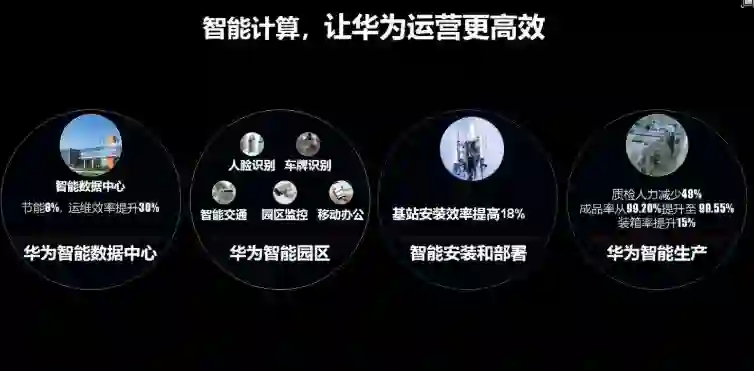 而智能计算正是是企业转变的纽带,华为的两种方法是,构建新的计算平台,另外一种则是将 AI 用到基础设施中去,提升数据中心的效率和降低成本。