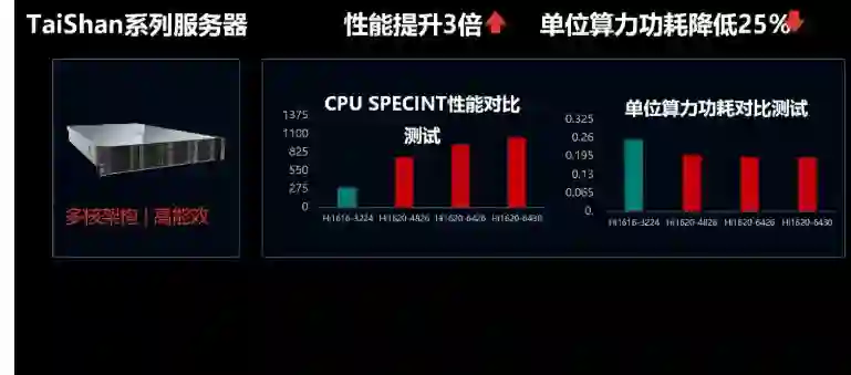 通过自主 TaiShan 架构所建置而成的服务器可提供较华为前代产品 3 倍的性能,且单位计算能耗也降低了 25%。