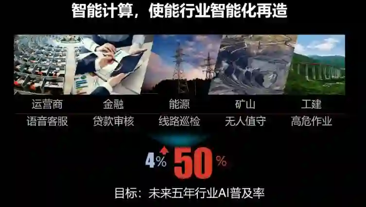 而面对未来,邱隆希望通过在智能计算的完整布局,能够改善全球行业的智能化再造目标,包含运营商、金融行业、能源产业、矿业以及工建高危作业等,进行更好的优化,通过极具优势的技术整合和管理优化,希望能够推动未来行业 AI 普及率 50%的目标。