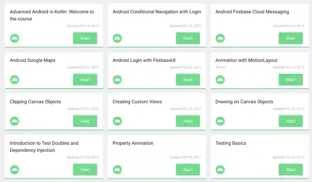 我们还为各位开发者们准备了一系列新的 Codelabs,组成了一个 "使用 Kotlin 进行 Android 进阶开发" 的课程。这一系列的 Codelabs 安排与教学课程类似,相比较全部由讲师主导课程,我们希望可以让开发者们自行决定学习进度,并在这个基础上与视频教学内容配合学习。无论您是喜欢通过阅读和代码实验来自行解决问题,还是倾向于在讲师的帮助下了解代码,我们都可以满足您的需求。您只需要: 选好方向,开始学习!