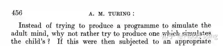 AI-GAs: AI-generating algorithms, an alternate paradigm for producing general artificial intelligence(https://arxiv.org/abs/1905.10985) 读罢深感和我对AGI的思考不谋而合,特和大家分享一下这里面的思想。 先说结论:AI-GA这篇文章虽然是泛泛而谈,但是我认为是一篇具有历史性意义的文章,因为这里面揭示的就是真正实现AGI的方法论。 我们来看一下paper里面的这一段话: 什么感觉? 道破天机的感觉! 在Jeff Clune眼里very intelligent people会是什么人呢?只能是最顶级的学术大牛了,比如paper acknowledgements里面的Peter Dayan (德国马普所)Zoubin Ghahramani (剑桥大学)还有一堆openai和uber ai lab的人。 为什么Jeff Clune会说“It was not an easy decision for me to make." ?因为以前AGI根本就是一个概念,是触碰不到的地方。具体的实现途径是什么?没人说清楚。 DeepMind和OpenAI推崇的DRL深度强化学习就是AGI吗?不是。为什么呢?因为AGI应该内部就包含了DRL,而不是DRL创造AGI。后面的具体分析我们会说DRL的作用,确实是AGI必不可少的组件。 现在,Jeff Clune以个人名义写了AI-GA,可以说把AGI的实现途径说清楚了。我们知道,AGI这一个目标在Alan Turing提出图灵测试的时候可以说就有了,甚至Alan Turing在他1950年的人工智能开篇论文Computing Machinery and Intelligence中说了: 这实际上已经道明了AGI的实现途径了。牛逼的图灵,才提出人工智能就已经睿智的看到了实现的方向。我们后人不过是把图灵的思想具体化而已,而Jeff Clune提出的AI-GA正是一条具体化的实现道路。 那么,就让我们一起来道破天机吧!(以下内容包含大量个人思考)